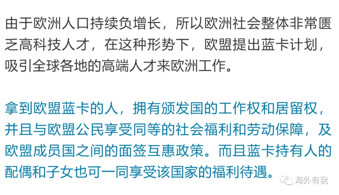 2、欧盟蓝卡制度的实施:德国为了吸引全球高端人才,实施了欧盟蓝卡制度,持有欧盟蓝卡的外国人可以在德国长期居住和工作,满足一定条件后,可以申请永居。